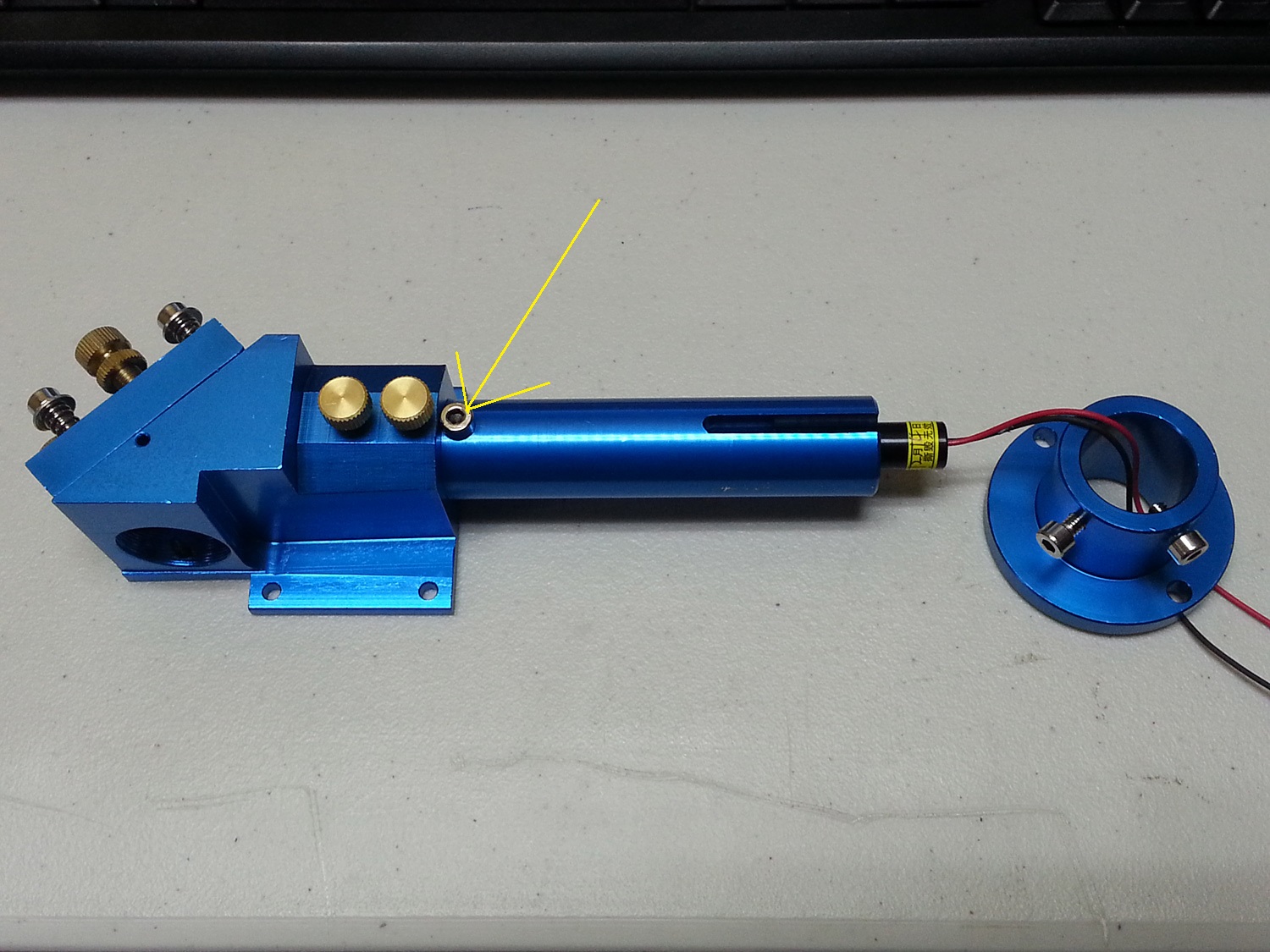 The yellow arrow I added points to the screw that retains the diode in place. Is this correct?Tech_Marco wrote:Open the base stand and inserted the pointer from the opening.