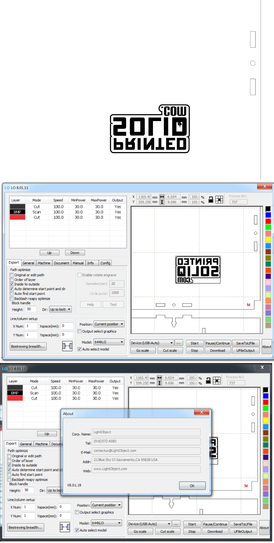 So I have been running version 8.01.11 for awhile and it's always had a problem where images would randomly flip and parts of the drawings wouldn't output. I just tried upgrading to 8.0.19 and the images are still flipping but it appears that it is at least rendering all the vectors now. Originally I got around this by combining and grouping everything in corel before outputting and it still would flip images. I also see a weird bug where the title bar shows 8.0.11 but the about shows 8.0.19. In my attached image you see the way it's drawn in corel and then how the plug-in sees it and then how it's reporting different versions. Thoughts?