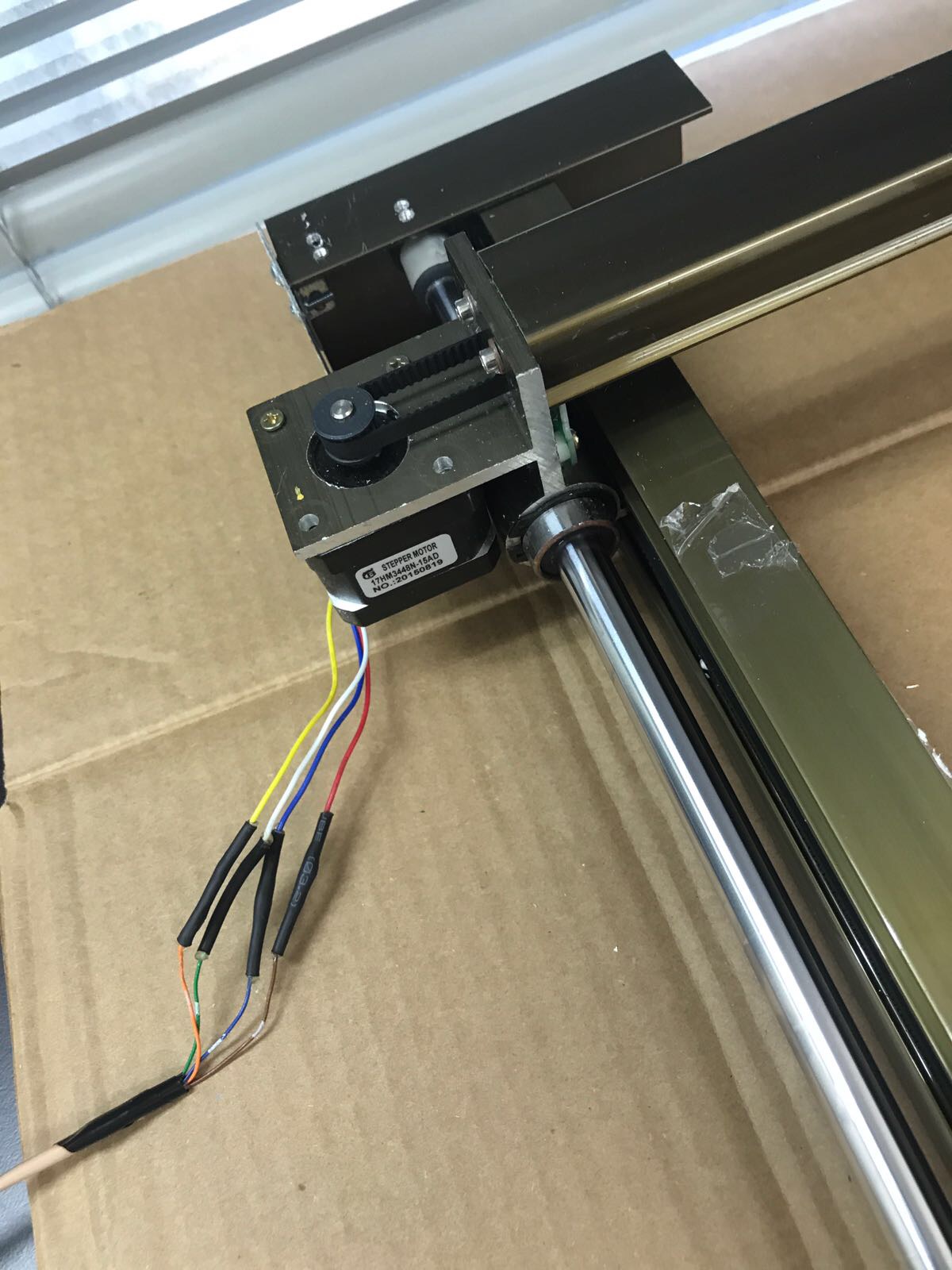 Then, I asked my tech to loose the one pair of motor wire off from the motor driver. When I tapped the pair wire together and found no friction happened to the XY gantry. Then, I think I know what was the the issue. To confirm with my assumption right, I asked my tech to lose the other pair wire and tapped a wire from previous to the new pair wire and I felt the friction happened on the gantry. Bingo! He mistakenly crossed wire pair for the A+A- and B+B-. After I reversed the pairs and power it up again, guess what, the gantry start to fly like a bird, like an airplane!