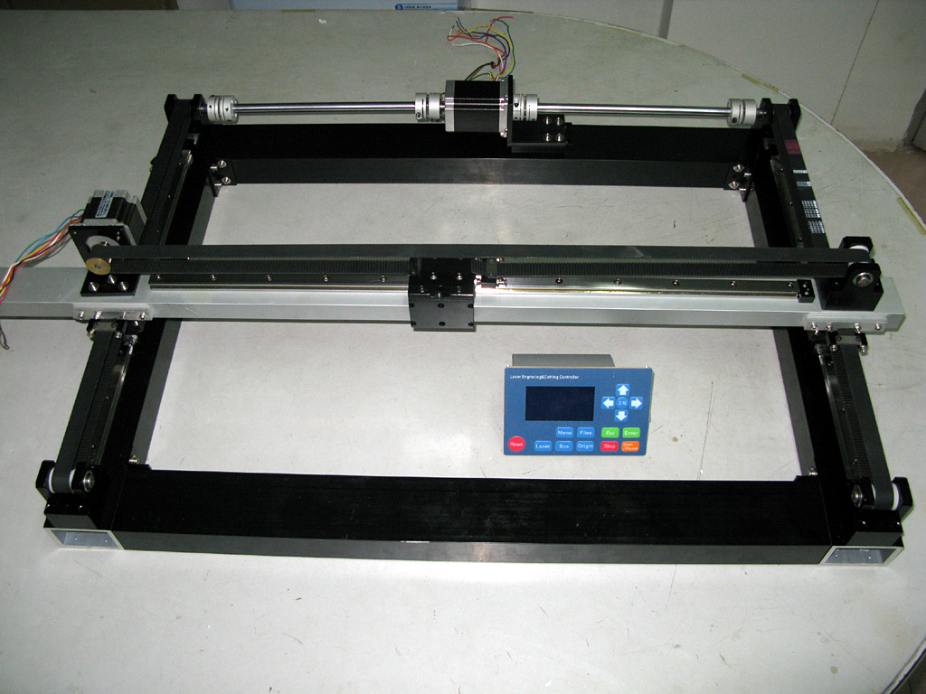 First, the XY bed being built-up by a laser Pro and tested it. Then he will disassemble it in to four main parts but not down to pieces. The track, guide, motors, switches are all installed on top of each aluminium bar. The belt, the coupliing are need to be installed by customer. Plus, the 4 pieces aluminum bar are not attached as well. The way to do is to mininize the shipping space and avoid damage during shipping.