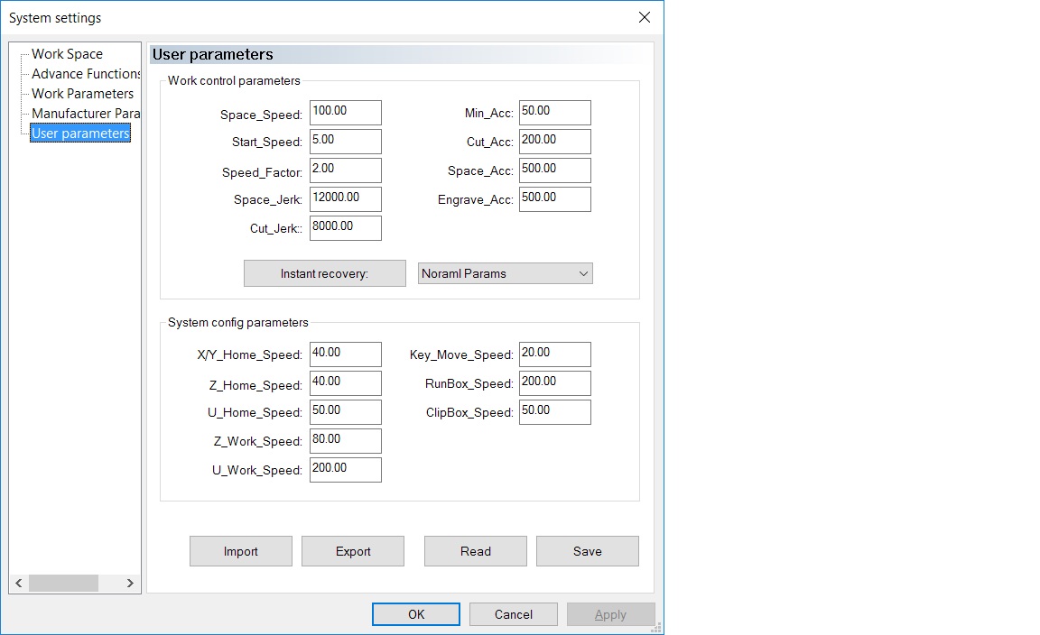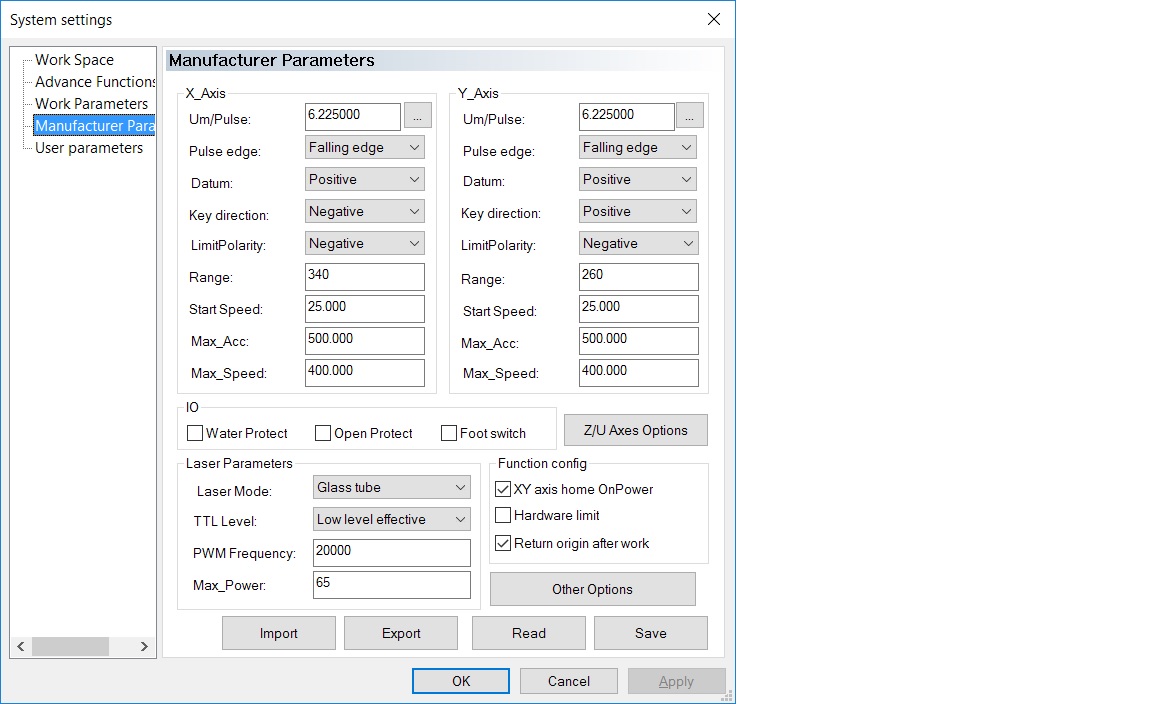 It looks like that the DSP is not 'sensing' the limit switches. The laser head carriage is bumping to the switches and after 5 seconds of very hard bumping it stops. This is not normal to me. I wired the switches according the schematic (using 2 shielded wires). the X and Y switches are (Normal Open) connected to the GND and X and Y limit switch pins on the DSP. Measuring with a multi-meter shows that the switches are functioning fine.