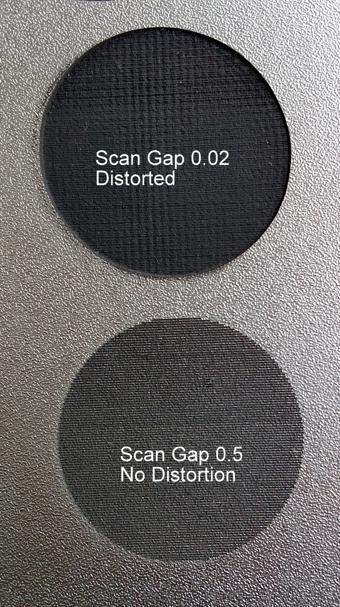 Normally on all my engraving I choose a scan gap of 0.02 I have also tried the 0.03 but the distortion remains.