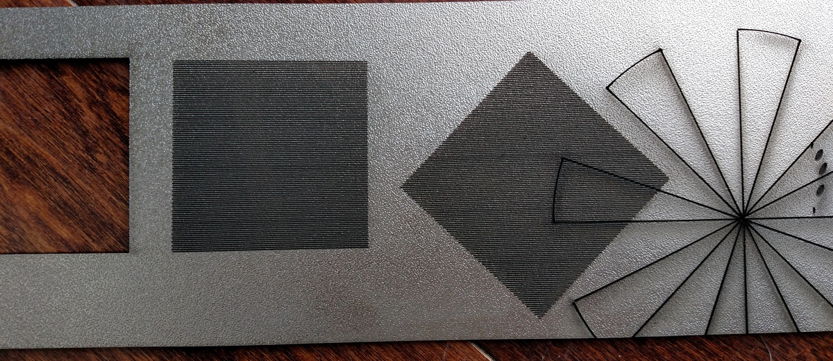 I ran this test file Marco put on the forum and to me it shows the machine is in great alignment and no belts have slack in them. This was cut at 100mm second.
