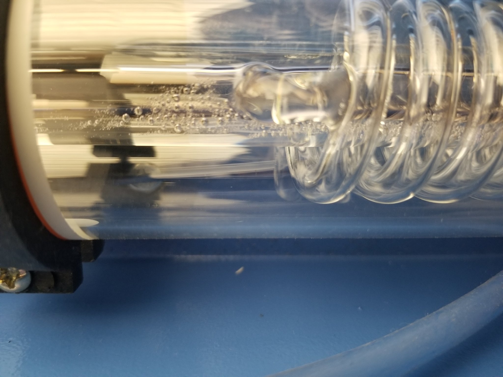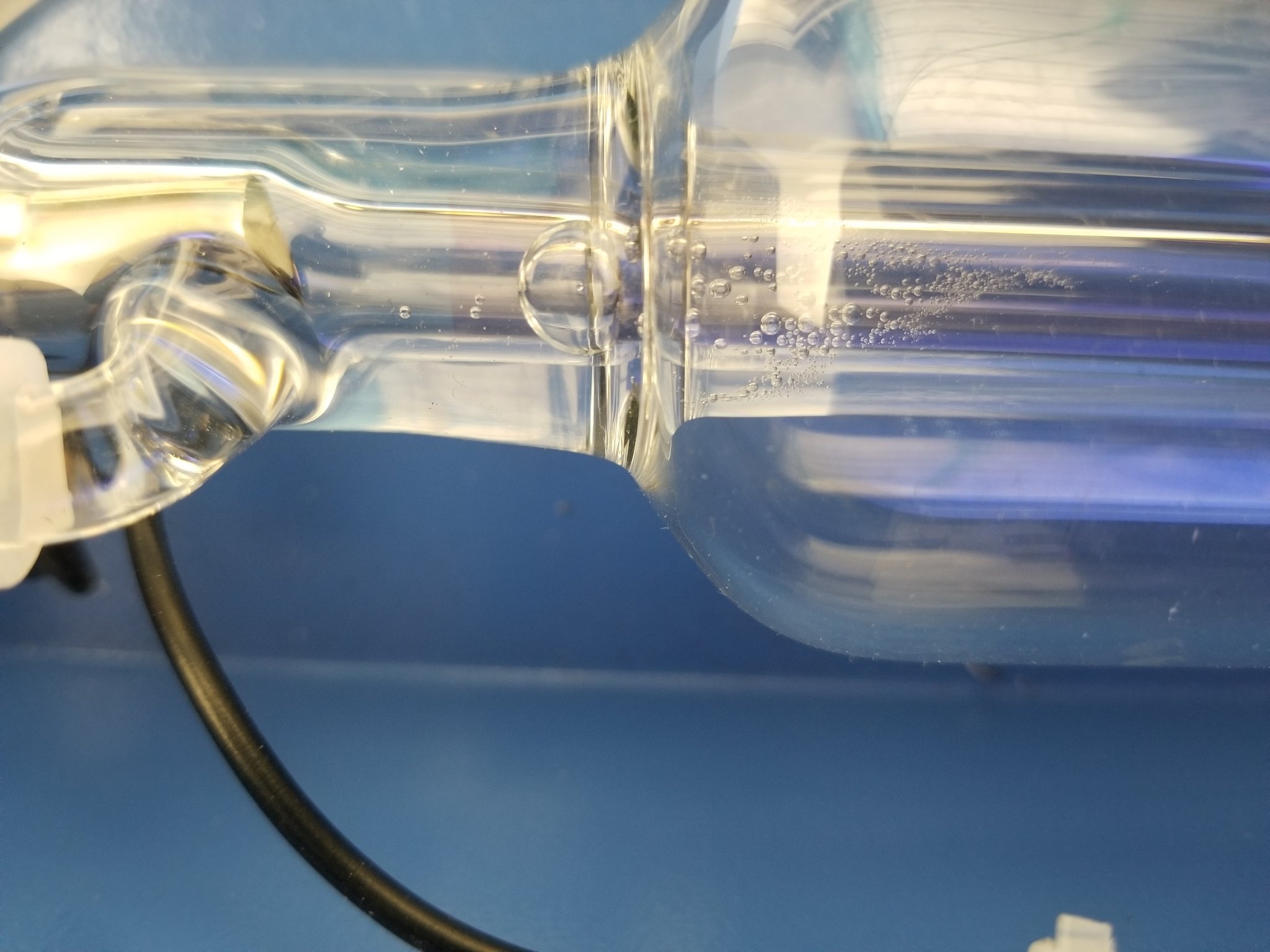 • I never checked for air bubbles in my old laser tube, so I'm not sure if the heat from unknown bubbles may have caused the cooling tip to come off, thus causing the tube failure.