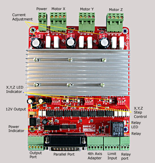 Note, it must be a 3 axis board as I was using Z stepping down to simulate "Fire" action. Making sense so far? I used the on board relay for safe guard and you don't have to use it but dangerous if you forgot to code the file to shut off. Relay engaged only if the X,Y in motion. So, why fire the laser when X,Y still in origin, right? The relay is providing a layer of safety protection.