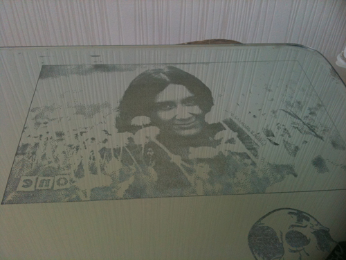 Here is my todays portrait engraving try. This was made on back side of mirror. Looks much better than my other previous attemp, but if you look at mirror straight, at 90 angle, it does not looks so good as looking from side. Anyway, good result.