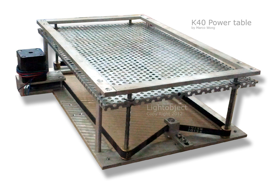 I just finished the design of a power table for the K40 (also name D40K) laser machine. The finished product will be available in about 2 weeks. It will look much better than the video showing as the most parts will be sent to a factory for anodization process. The base, and the frame will be dyed in either Blue or Green color. The table comes with a 42 series stepping motor. Controller and the driver is not included but available from our shop. Price is $115 and in DIY bundle. It should take 45~50min to set it up. It can rasie 5lb object and the traveling distance is about 6.5cm (2.5"). Not much but should be handy enough to handle most task with this little K40 machine.