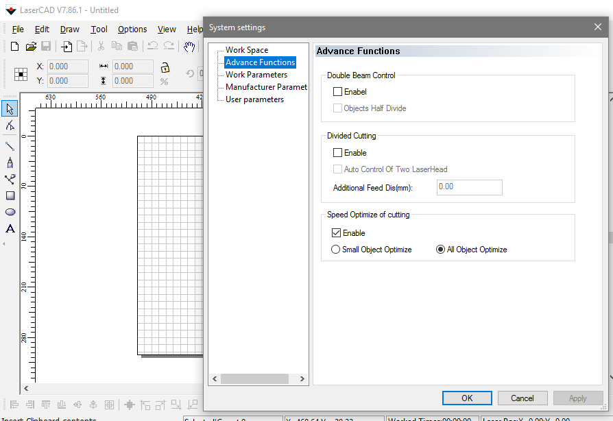 BTW: in lasercad is a possibility to select "use Rotary" and set the values there.. Don't forget to check that checkbox when you start..
