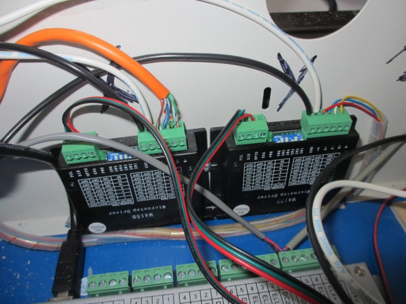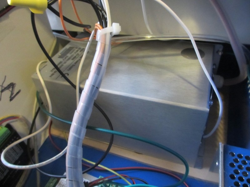 I also included photos of my general arrangement of wires inside the machine and how everything is connected. I followed the wiring diagram supplied in the forums, and didn't really improvise anything. The only exceptions are that I used RGB LED wire to connect the drivers to the DSP, and I included LED strip lighting inside the machine that runs on its own driver and is independent of machine power. Also, during the troubleshooting process, I added an additional ground line to the chassis of the DSP controller, and a separate isolated ground line from the chassis of the LPSU directly to copper piping with an additional layer of plywood separating the LPSU from the chassis of the machine. The LPSU is still grounded along with the rest of ground lines through its power-in adapter, so its not off the floating potential.