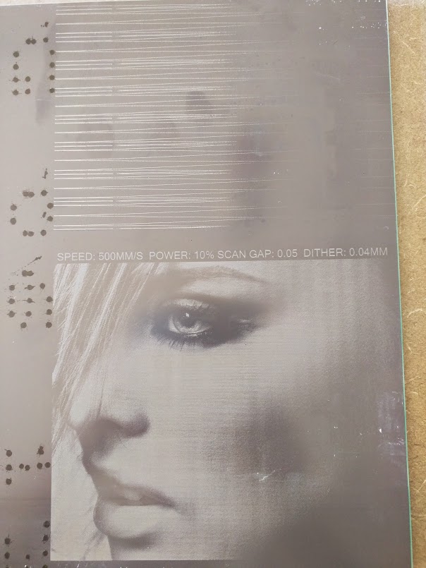 The bottom part completed at 500MM/s 10% power and a 0.05 scan gap. The top image is the same settings only changed power to 20% and it started skipping lines like crazy. Hope this helps with understanding what the issue might be. It seems to be speed / power related.