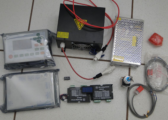 I have a little machine K40, shenhui laser brand, that I upgraded it now with a DSP controller. My DPS is a RDC320A controller, and I put a new 40W laser power supply as the pic attach. The drivers used are 2M415 all purchased from china. Only a 3 digits anmetter and a isolated power module I buy from lightobject.