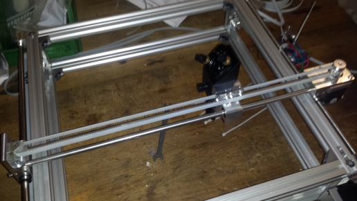 It takes about a week and i have a good construction. For the hole construction i use the constructionprofiles which marco uses for his selfbuild laser-cutters. Milling all the parts takes about 2 weeks. Everyday after work i finish 1-2 parts and build them slowly together.