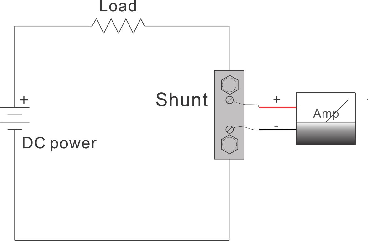 Most amp meter take 75mV DC shunt.So, if you have an amp meter say 30A, 75mV, then you need a 30A,75mV DC shunt to work it