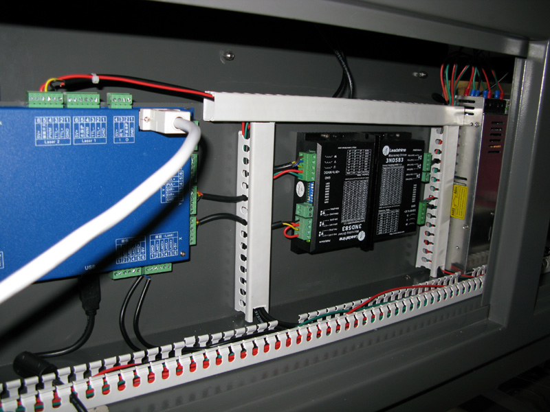 Found a great laser machine in China. Nice DSP controller, high speed roller, inter air cooling system, and beter wiring system. It runs 800mm/s for engraving