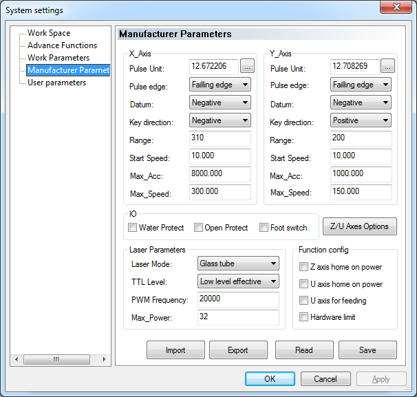Gadroc wrote:Sorry I was referring to Position Relative. Make sure it is set how you expect it to be, and then download the job again. Attached are my screenshots of the settings I'm using, and yes as you can see from my thread I've also converted a K40 machine. I noticed you have hardware limit checked on your machine do you have 4 limit switches or just those for the home position?