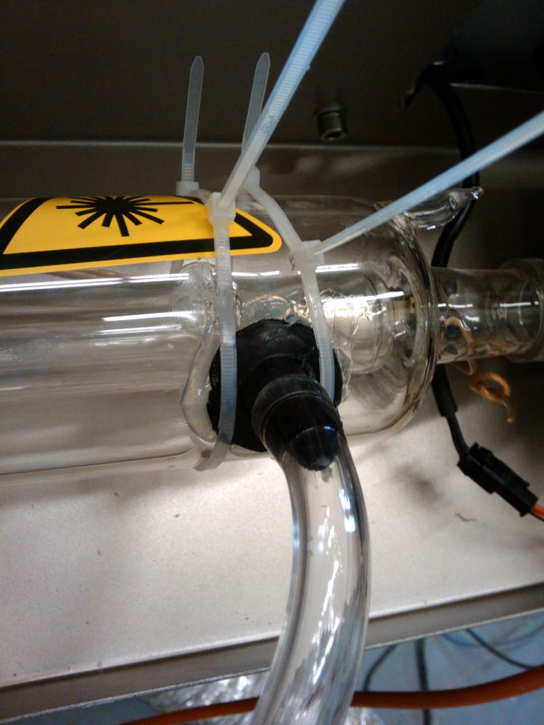 I also broke one of connections on the laser tube. I knew it was fragile, but it was about 10X weaker than I thought it would be. I fixed it by running to the hardware store and getting a brass hose barb fitting (like http://www.amazon.com/Anderson-Metals-B ... 485&sr=8-1) and bonding it over the nub with a marine grade epoxy. It worked great, but aesthetically it left something to be desired. :lol:
