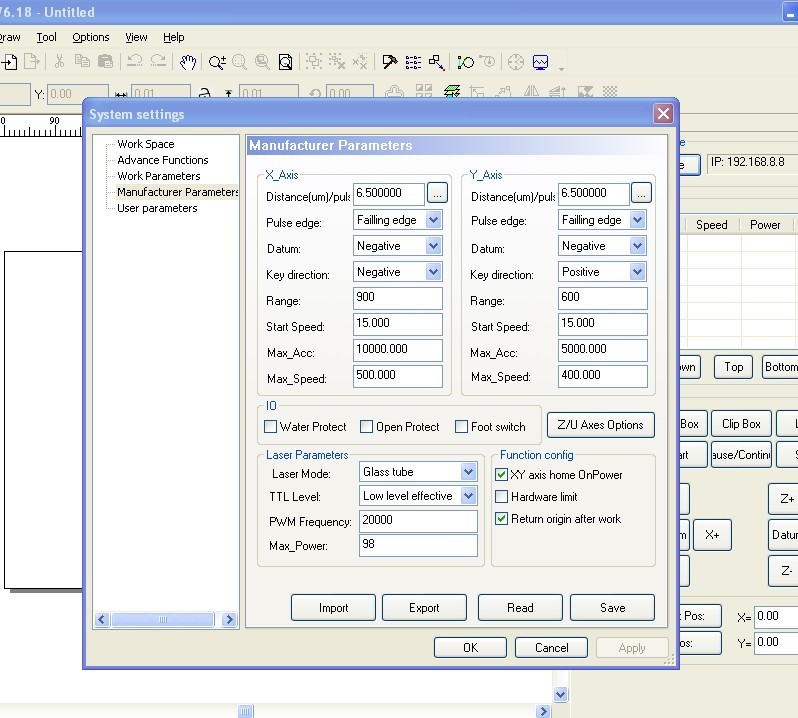 I hope Marco can help me with this, I upgraded the firmware in a 2012 DSP with the 120817V7 version, vector cutting works better than before but when I try to engrave something the acceleration is insane!, the motors move way too fast and the result is awful, before the upgrade I was getting pretty good engraving results but now the speed and acceleration are scary! no matter how low I set the acceleration in the user and manufacturer parameters in Lasercad, by the way, I'm using the new version of lasercad too, I'll try with 5.95 tomorrow to check if the problem is the DSP firmware or the lasercad update, please could you try testing some engraving with the new upgrade?, there must be an easy solution to this problem 8-)