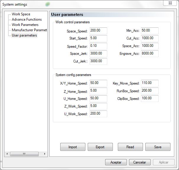 This is the user parameters, I even reduced cut jerk and speed jerk a lot but the problem persists, I had to load an older OS version, Please make some engraving tests, thank you!