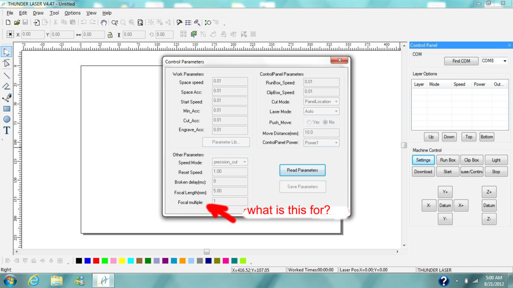 I got a machine K40 from a buddy of mine to fix it, who has the thunderlaser PHcad 4.47 on it and there is a setting in conrol setting where I am a bit buffeld ( see scree shot) I try to find out what this setting is for and how it should be set.