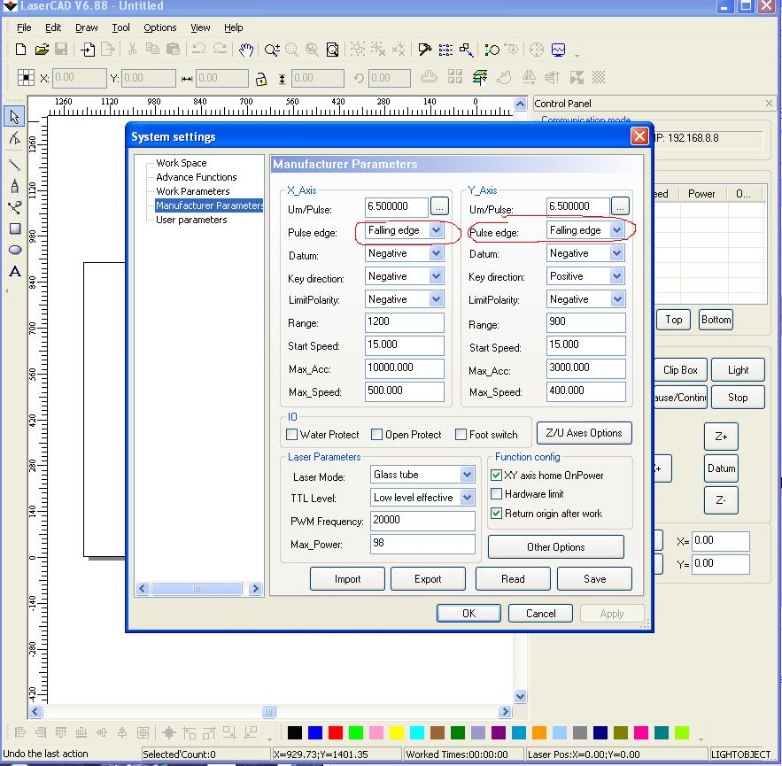 You may want to change the pulse edge from "falling edge" to "rising edge" on both X and/or Y. Do each separated before doing both. And for each change, make sure you Save it and hit "Reset" button on the LCD control panel to take effect