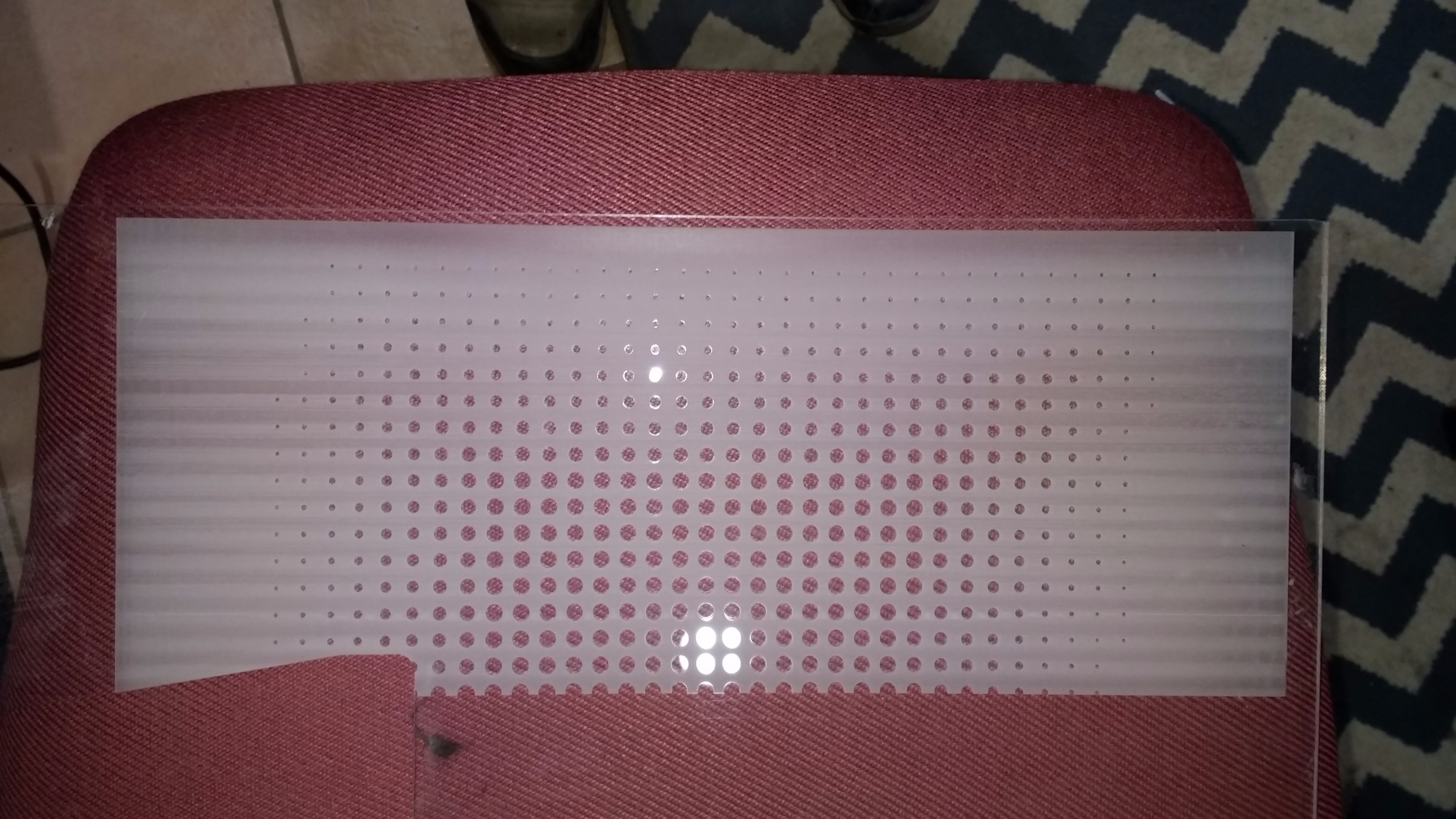 I am trying to engrave a large piece of acrylic which is mostly solid fill with dots here and there. The power level is the same for the whole piece.