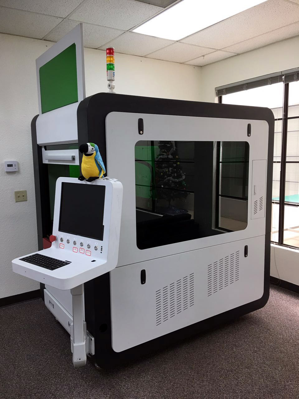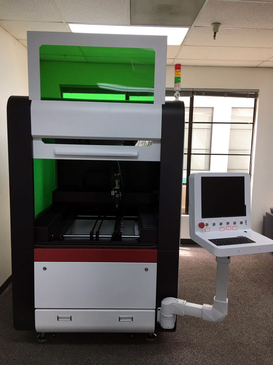 The work area is closed to 2ftx2ft and there is a 500W laser module installed by default. We can upgrade it to 700W or 1000W per request.