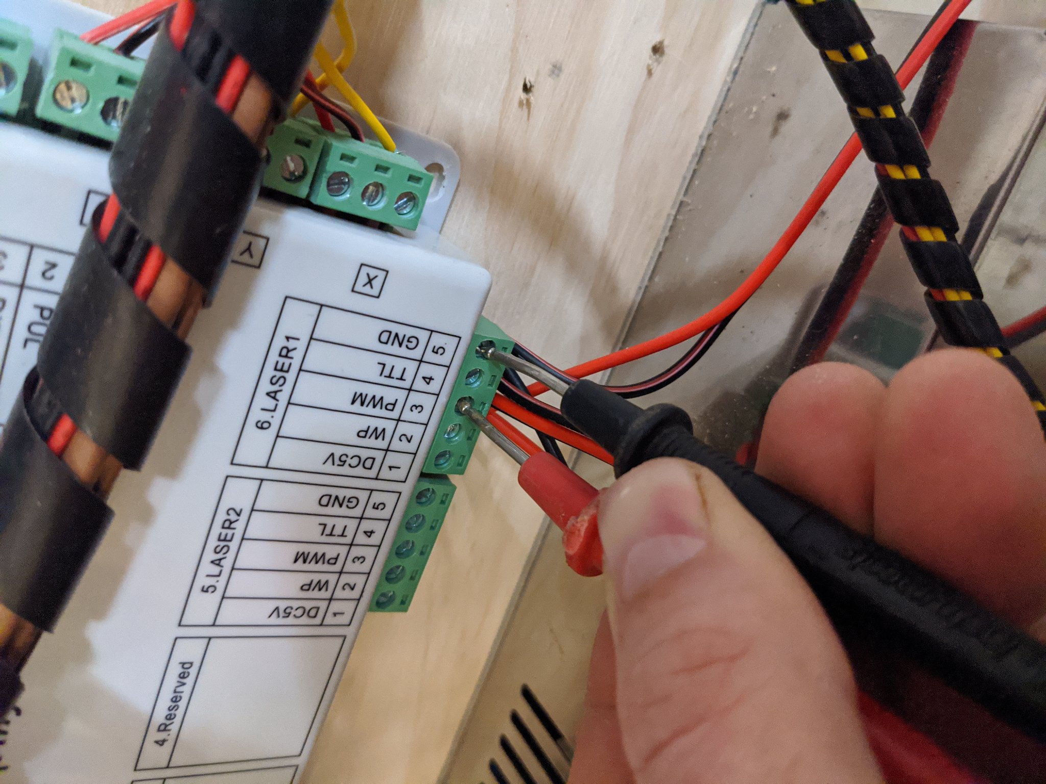 disconnect those wires(unplug the green adapter) and measure again. Try to use Laser2 in LaserCad and measure Laser2 pwm too.