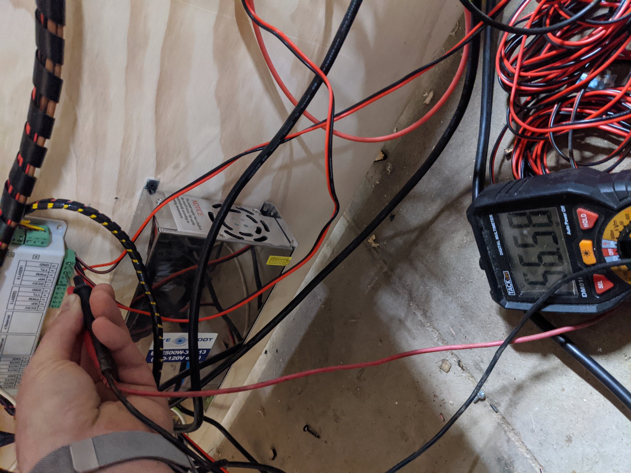 Ugh. Ok, scratch all that. The batteries in both of my DMMs were apparently close to dying. Calibrated all the meters and now, I think I understand what's happening. So I set the max power to 45 percent in the manufacturers settings as shown, expecting that that would be the max power for the laser. It appears that the settings on the front page pictured below, override that. So if I set the cut settings on the main page to 95 percent, it is not 95 percent of the 45 percent I set laser max power to, it is 95 percent power. It also appears that the pwm stays high after the laser button is released, is that correct? Also the laser button responds to the settings programmed in to the lasermaxpower1 setting, and I would have expected it to respond to the max power % in the laser parameters of the manufacturer settings.