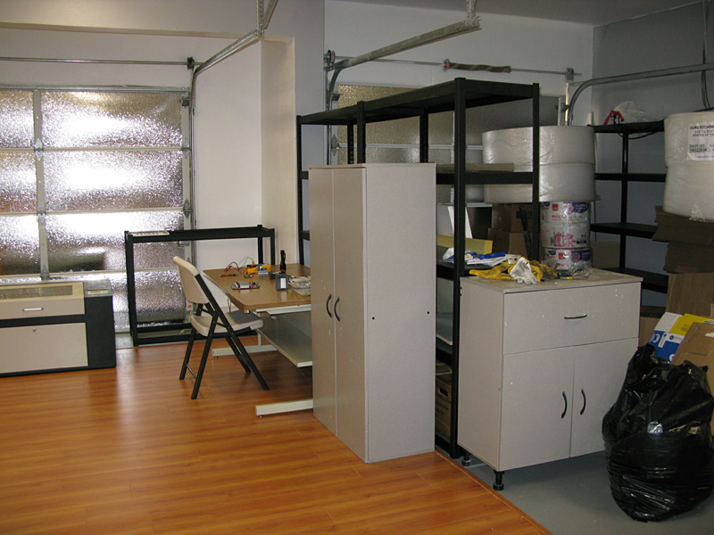 Some customers want to come to see our CO2 laser machine before buying (highly recommended). Since ecomomic melt down so we decided not to renew a lease with the landlord of the 3000sqf warehouse but running the business in home based. However, space is very limited as we have so many items in stock. The only space that I could think of was the junkle: Garage ;)