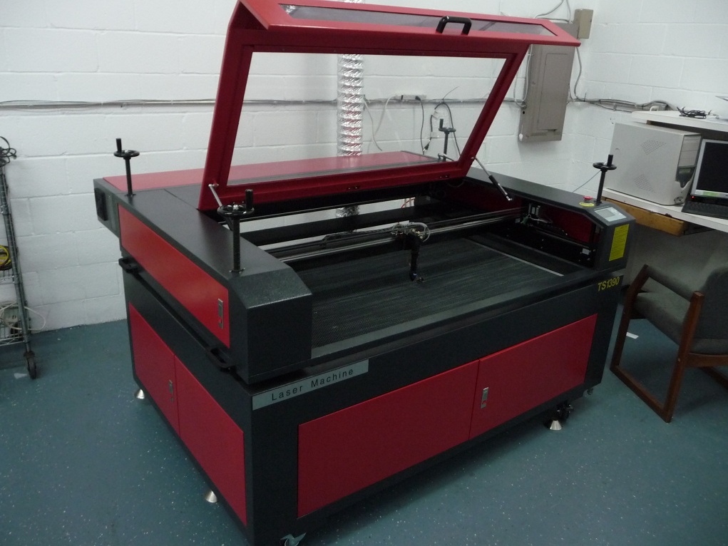 Our machine is a Transon TS1390. It has a glass laser tube that is water cooled. The software we are using is called Lasercut 5.3. There are belts that move the laserhead on the X and Y axis and the table can be moved up and down by a belt driven system. The tension on the belts seems moderately tight, but i am not sure what the correct tension should be on the machine. I moved the laserhead back and forth and noticed it started to hit the lip on the end of one of the the pulley as i moved it to the right, but never skipped any teeth. I dont think the waves are spaced the same as the teeth on the belt. There are screws that allow the belt tension to be adjusted. Heres some pictures of the machine we are using.