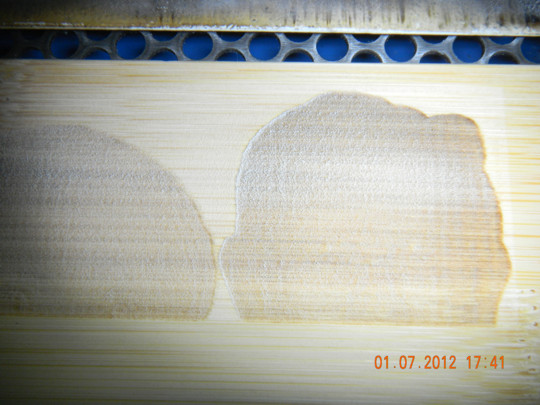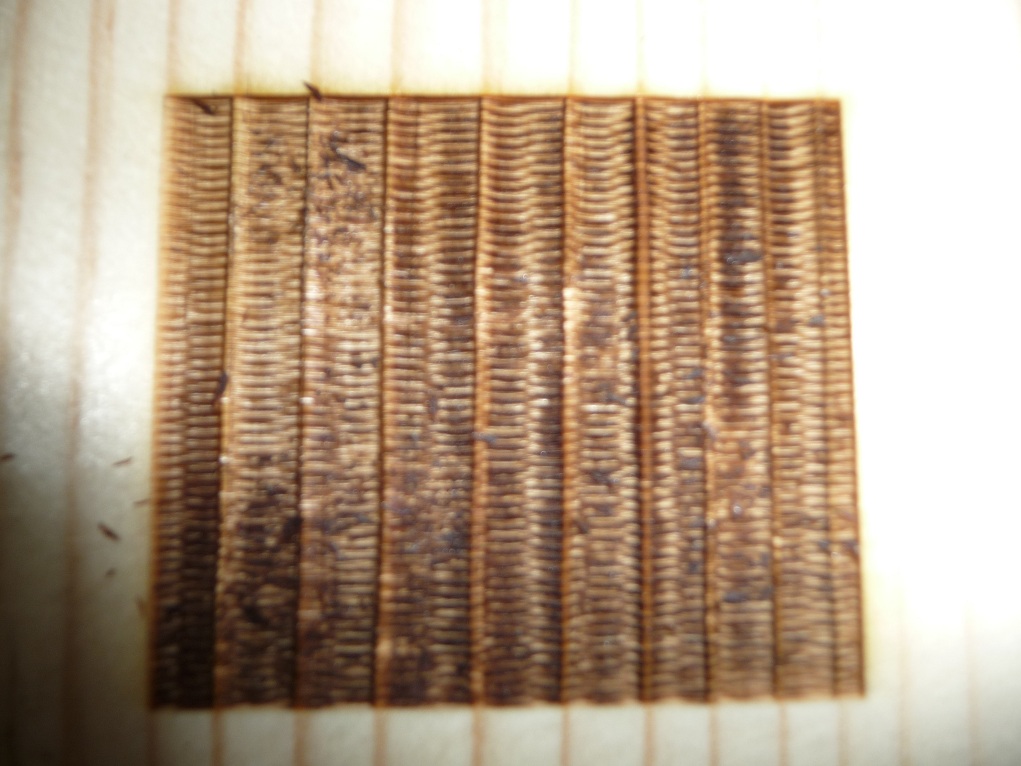 We have just set up out 100 watt CO2 laser and have tried to engrave a few things and are having trouble. There are waves in the pieces of material we are engraving. We have tried different speed and power combinations and have had the same result everytime. There is a picture attached of what i'm talking about. If anyone has any advice or has had this problem before your help will be greatly appreciated. Thanks alot.