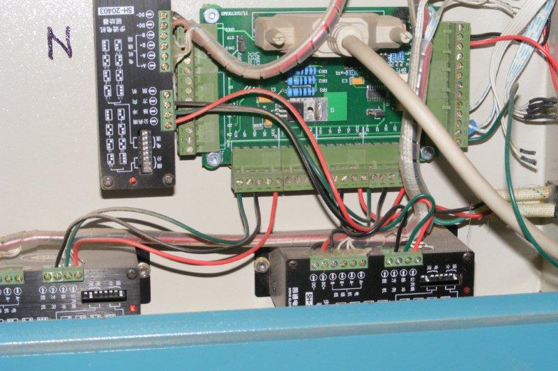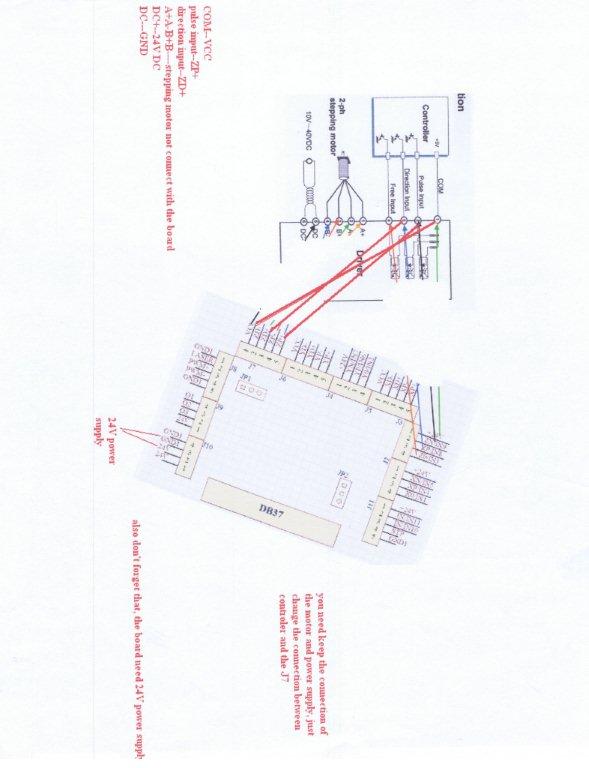 Thank you for your reply. I am attaching photos of the wiring and a copy of the diagram that the vendor gave me showing me how to connect the wires and how the dip switches are set for the step motor controls. The drawing with the red lines are the wiring connections the vendor gave me. The orginal PCI board and Dongle were defective and since I was not the original purchaser, the manufacture would not give me and technical assistance - even when I offered to purchase new boards, etc. That was why I changed to a different board. The drawing is the only assistance I have received. If there are any suggestions you can offer, I will be very grateful. I admit I am really desperate.