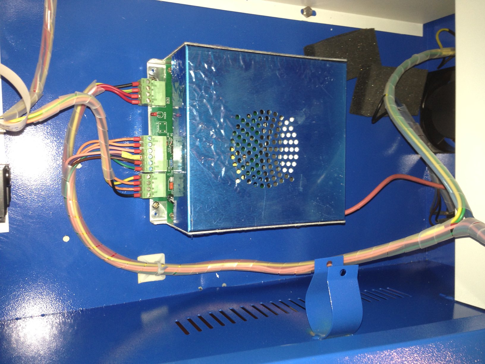 I also have the same power supply, I'm almost finished wiring up the DSP upgrade. I'm a little confused as where to install the - lead that comes off the laser tube. I know it was connected to a switch and also the power meter dial thingy. Mow that i have all of those things disconnected im wondering where it connects to the laser power supply. If I had to guess, it would be the middle Ground plug on the larger connector. I added a pic of where I think it goes, can anyone verify?