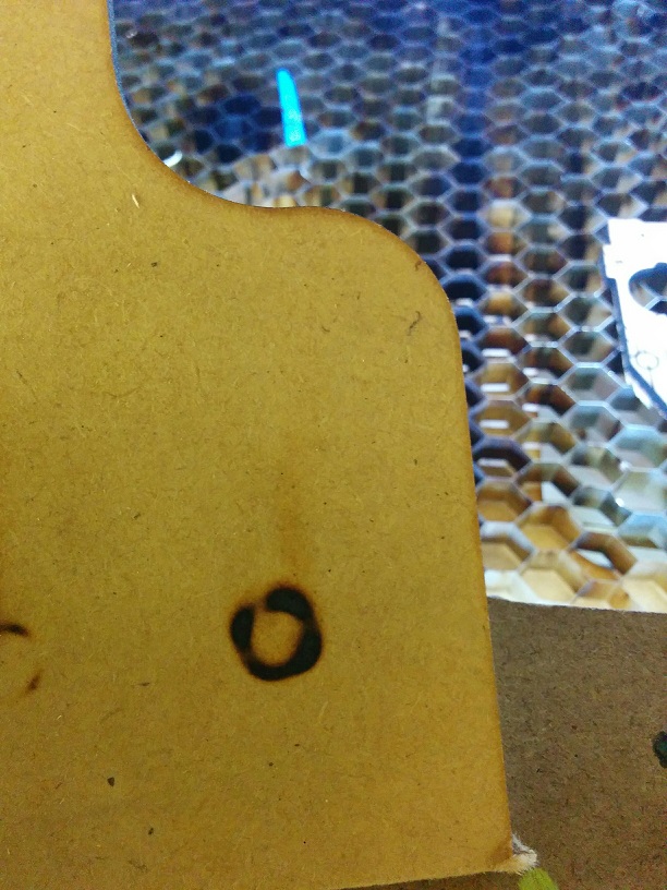 I get some cut power but not really much at all at 25ma. I cant even get through 1/8" MDF. The pictures are of Unfocused Beam spots the one on the MDF is about a half in wide which is about double what it used to be. On the blue tape the full "circle" is on the first mirror. The partial is on the second mirror.