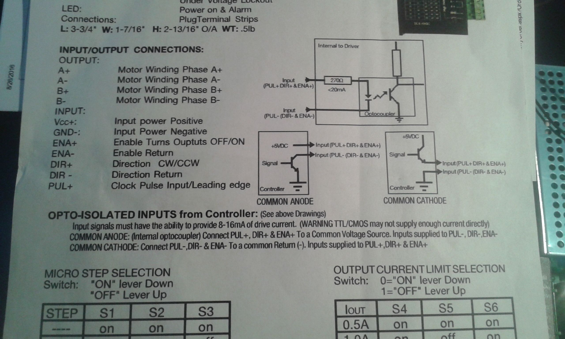 However the Microstep drivers I am using have a + and - for the PUL, DIR and ENA I currently have the wires connected to the +PUL, +DIR and +ENA. Is this the correct place to have these wires connected or do I need to use the -PUL, -DIR and -ENA terminals. Here is the data sheet for these Mircostep drivers.