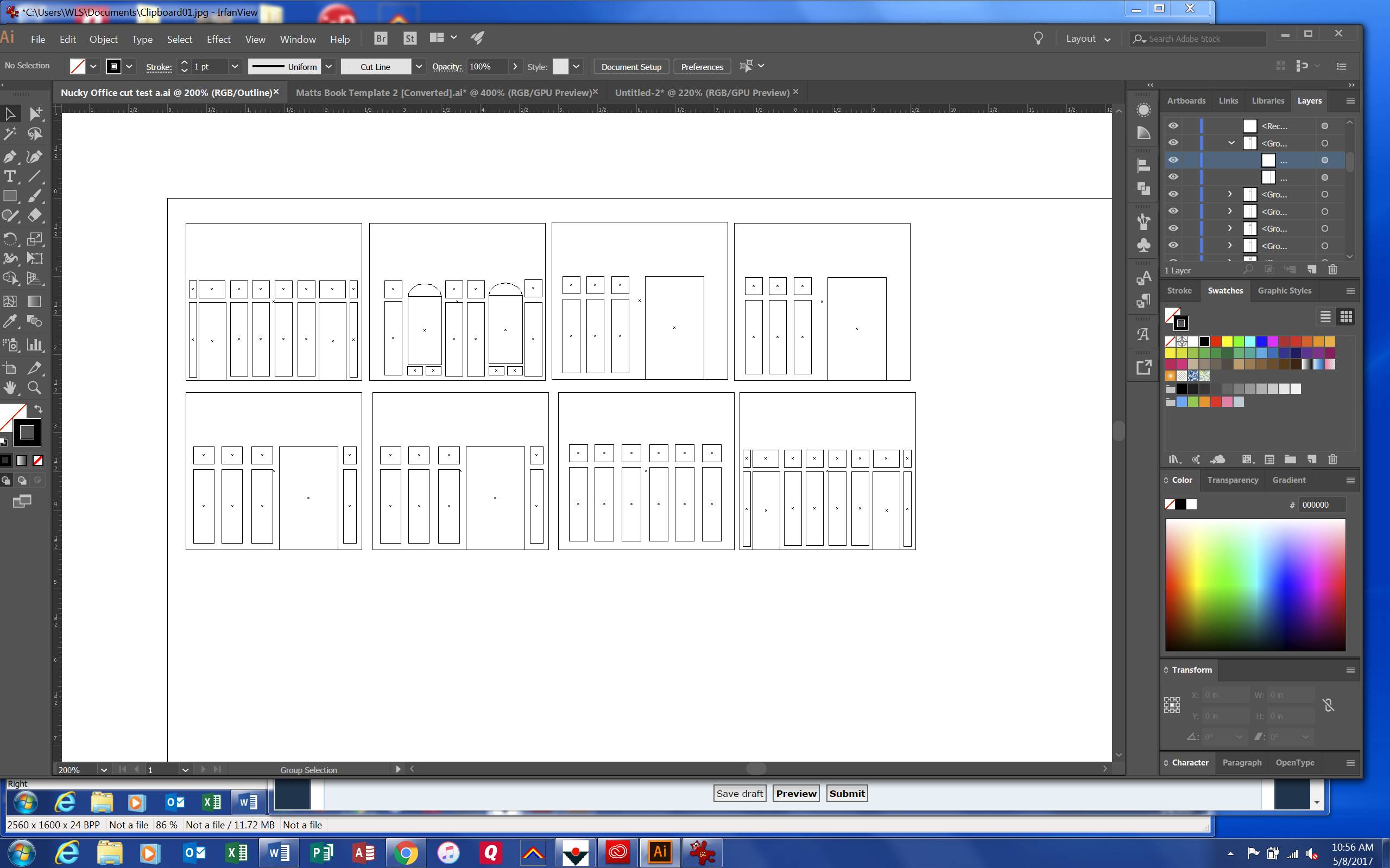 The "cooking grate" file is actually a guide for drawing parallel lines in a little book. That file works fine and I have no problems with it. Now I started a new drawing in AI (basically a lot of rectangles) but when I import it into LaserCad it took the lines from the AI drawing and made them three cutting lines wide. I tried to play around with different line widths in AI but for some reason extra paths appear when I import into LaserCad. The other file (cooking grate