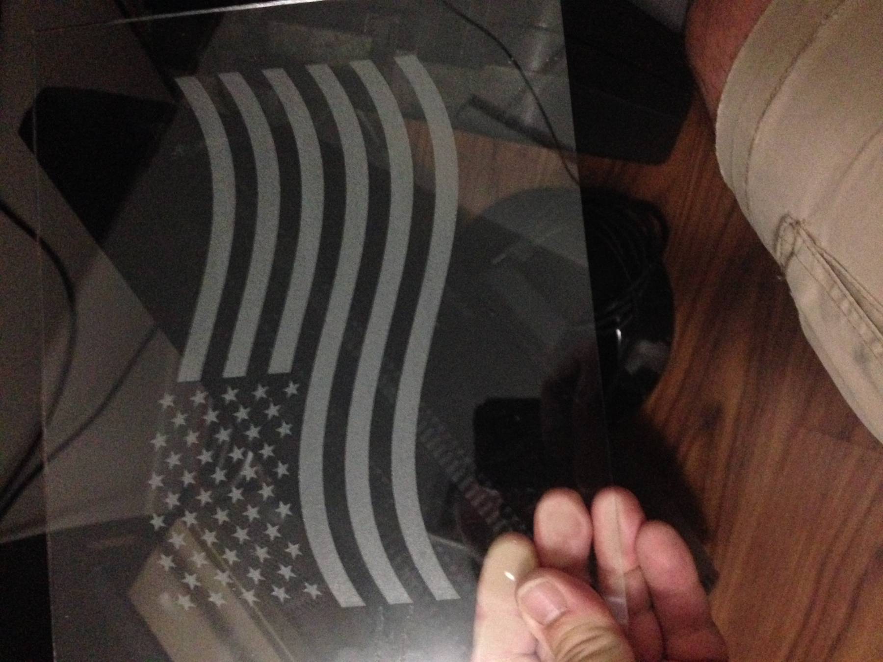 My latest is 'ol glory' done in glass. I have 3 layers, each layer is a different color. The original graphic came from a vector graphics site (purchased) and I used Illustrator CC to work the image so LaserCad can work with it. I save the Illustrator file in a version 8 copy which imports well into LaserCad.