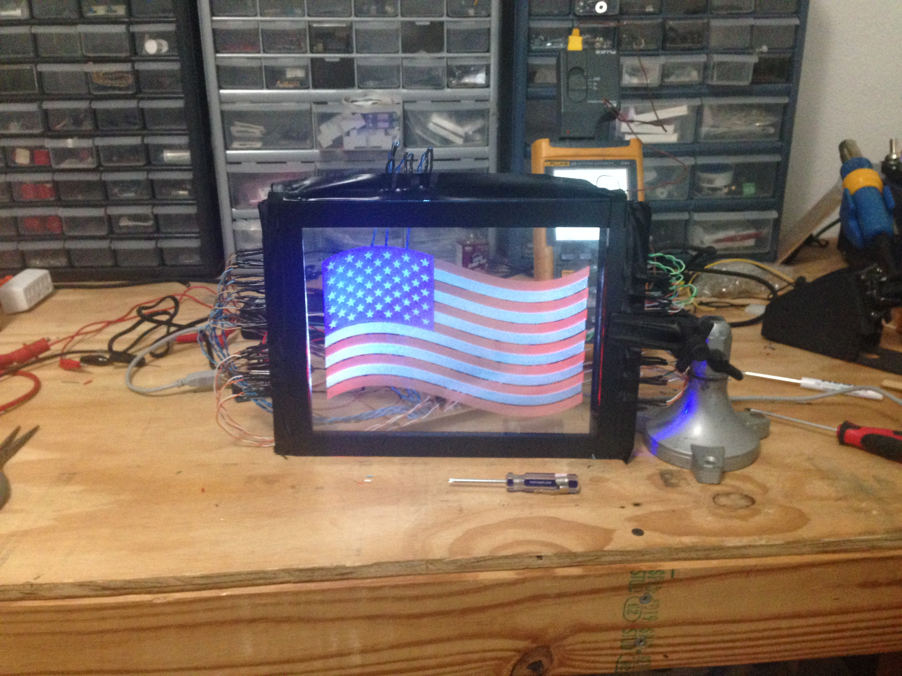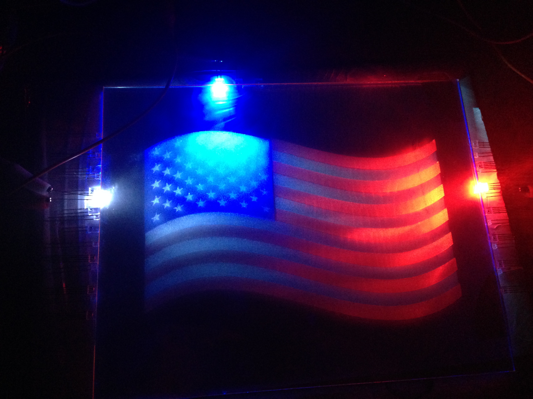 I do plan to sequence the LEDs to try for a ripple effect as if the wind is gently blowing on the flag, but thats for another weekend.