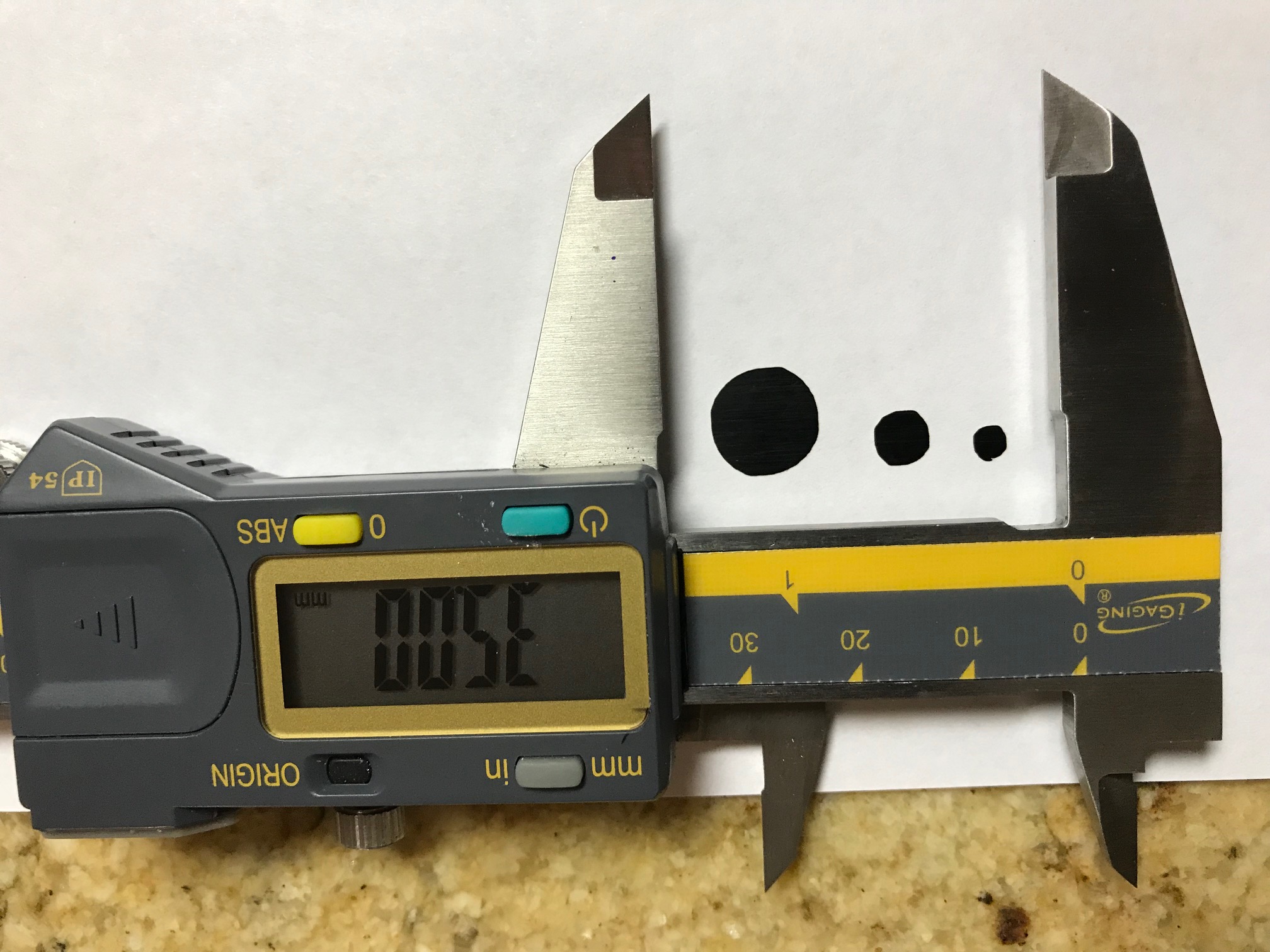Even engraving a vertical line of 0.05mm is straight and continuous. Only under a microscope of 40x magnifier I can see in which direction was engraved (bidirectional engraving 500mm/sec)