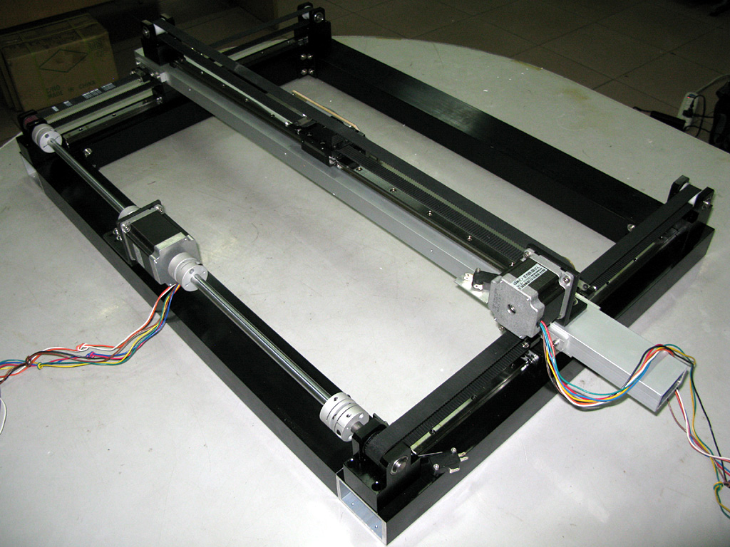 First, the XY bed being built-up by a laser Pro and tested it. Then he will disassemble it in to four main parts but not down to pieces. The track, guide, motors, switches are all installed on top of each aluminium bar. The belt, the coupliing are need to be installed by customer. Plus, the 4 pieces aluminum bar are not attached as well. The way to do is to mininize the shipping space and avoid damage during shipping.