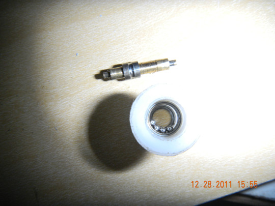 I only got one more picture attached, it is the tension wheel for the Y axis there are two and for the X axis is one. but all the original seems to have onlu one ball bearing what is stupid on such a wide wheel of 0.65 inches. bard from buildlog has some but they are only for 1/4 inch belts the K40 Y belts are 3/8 inch and the axel is 5mm wher the origional is only 2mm.