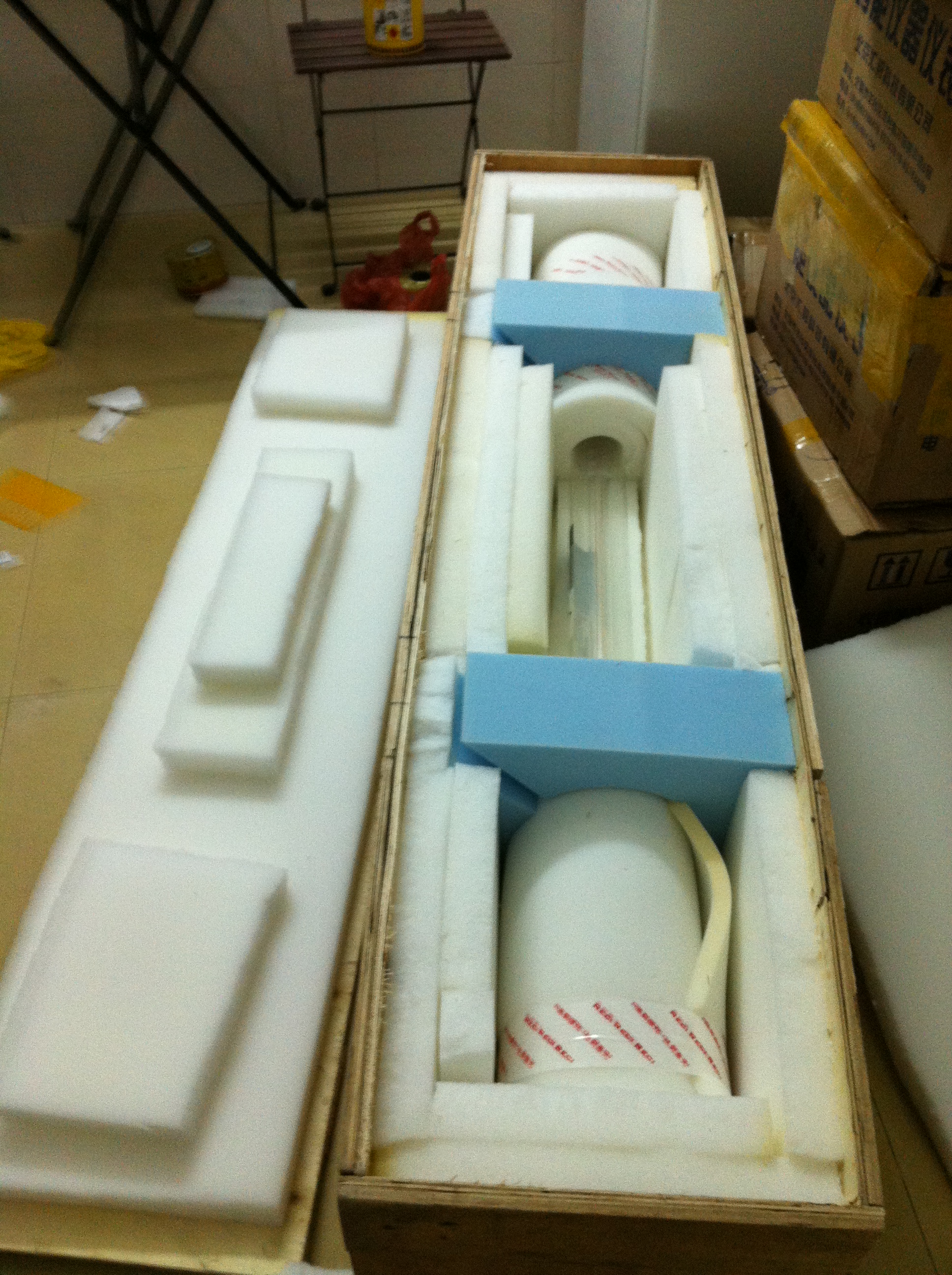 We specail ordered a wood case and use it to contain the the original packing of the tube with 4~5cm sponage in between the wood case and the inside box. To do it, the carton box should be good enough to absort vibration from a drop of the shipment