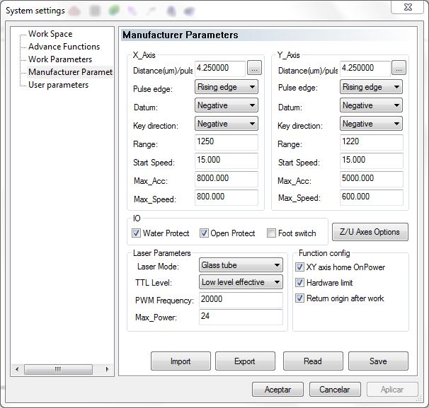 I hope Marco can help me with this, I upgraded the firmware in a 2012 DSP with the 120817V7 version, vector cutting works better than before but when I try to engrave something the acceleration is insane!, the motors move way too fast and the result is awful, before the upgrade I was getting pretty good engraving results but now the speed and acceleration are scary! no matter how low I set the acceleration in the user and manufacturer parameters in Lasercad, by the way, I'm using the new version of lasercad too, I'll try with 5.95 tomorrow to check if the problem is the DSP firmware or the lasercad update, please could you try testing some engraving with the new upgrade?, there must be an easy solution to this problem 8-)