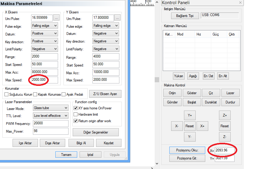 I think acceleration is problem with servos for your controller. When I gave high speed servo accelerate suddenly and brakes realy hard. So looks like there is no acceleration. there is no ramp on speed. when I give lower acceleration like 10000 servos move too much for engrave ( 30cm move for 10cm width engrave area)