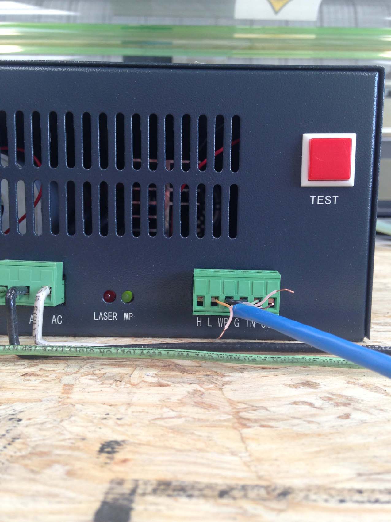 1. Laser PSU without plug from DSP to Laser PSU. I get two red lights (Laser and WP) and laser PSU test button will fire laser