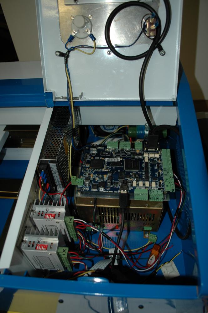 I got the DSP board installed, homing is good now, arrow keys all work, I owe you for shipping. I installed 2 mechanical limit switches. I had to replace the Laser tube, and attempted to align the optical path today but discovered that whenever the machine is energized, the laser fires immediately at 10 MA and cannot be controlled. When the LP-1 connector is unplugged the laser woint fire unless the small red Test pushbuttoin is pressed on PS.