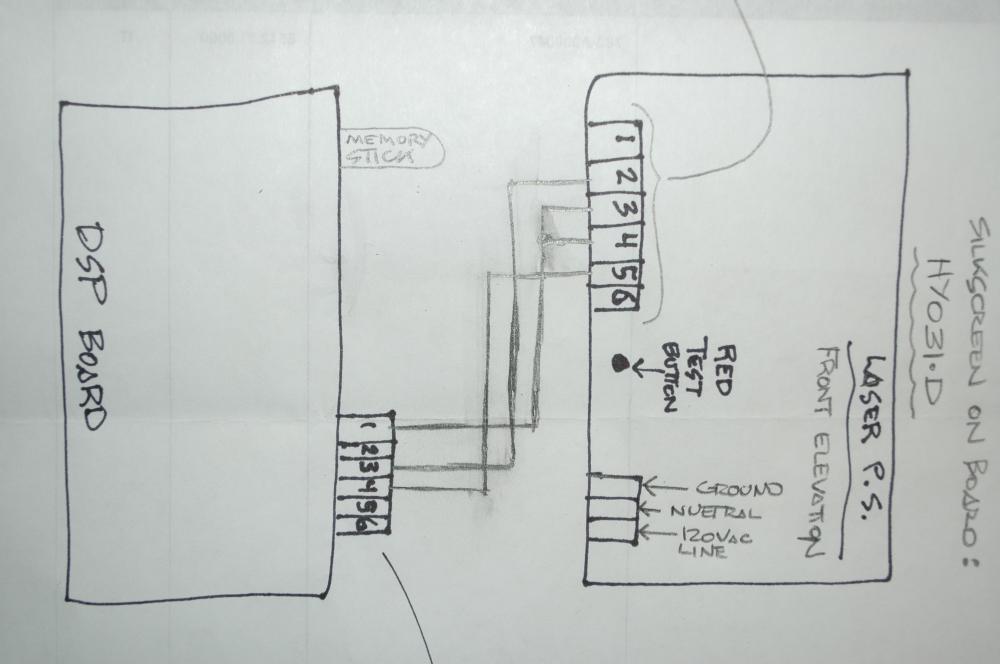 My PS is enclosed version in a gold colored case. all others I've seen are open frame type, I wanted ot see if there were any changes in DSP LP-1 terminal voltage status with Laser keypress, but didn't see any changes with a DVM. Some terminals were 2.8 to 3 volts but none of them changed states. It might be a short event. I was going to drag out the scope but thought I'd wirte first. I saw the youtube video you made.so I'm confident the board is OK. I am attaching some pictures of limint switches and the power supply that came with this machine.