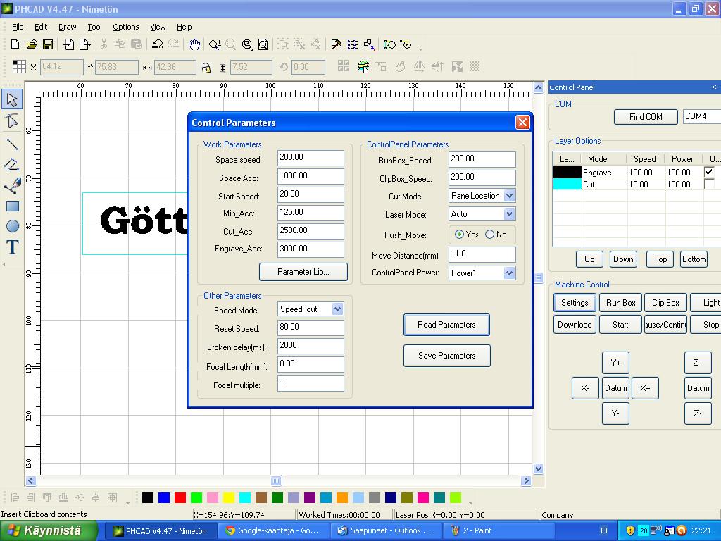 You have to change cut if you want to cut circle not engrave..Urbantrix wrote:Thanks for all the advice Teacdance. I'm now fully connected up.