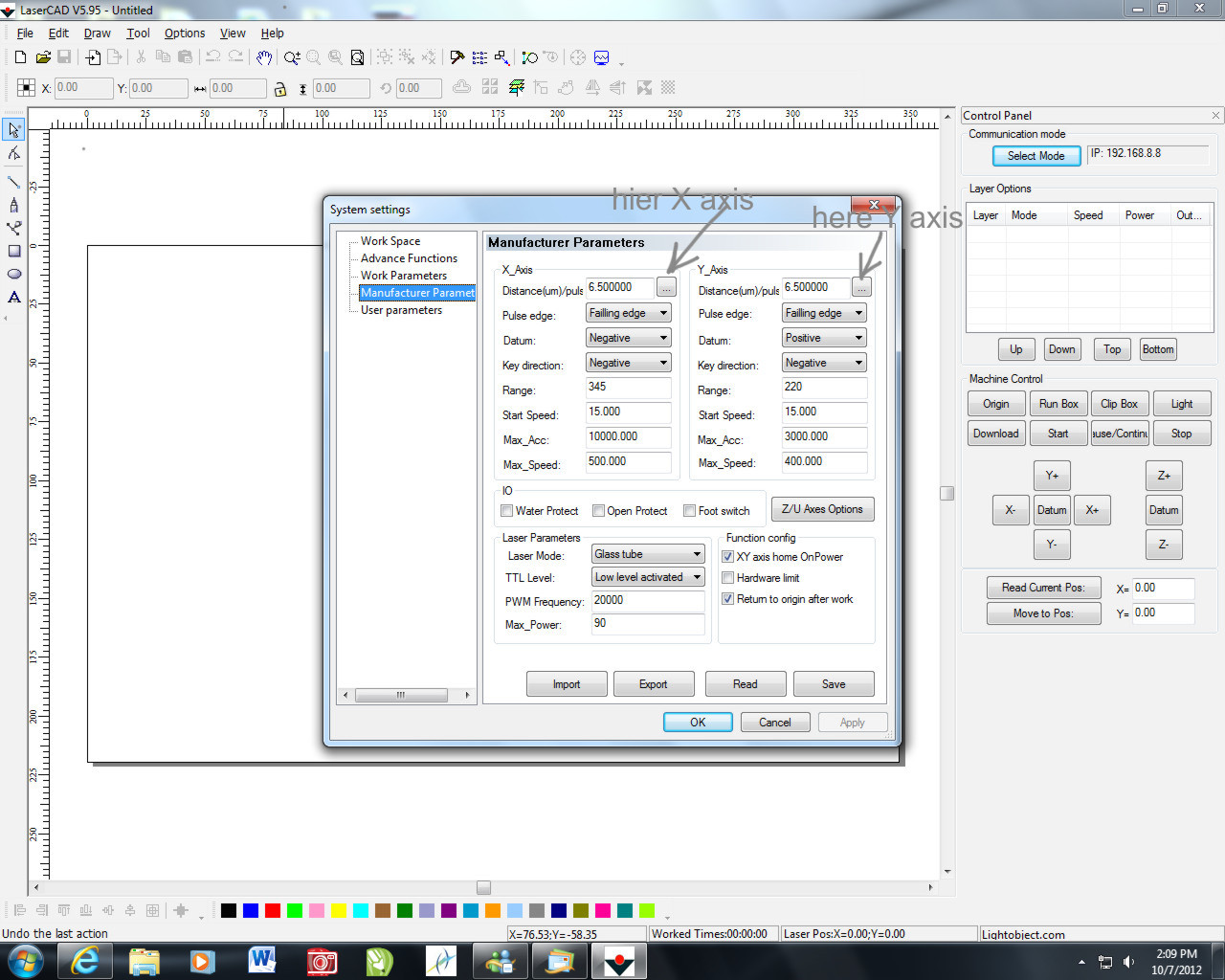 I just read that you dont have the DSP from lightobject what means you dont have the latest were the lasercut 6.27 programm is for
