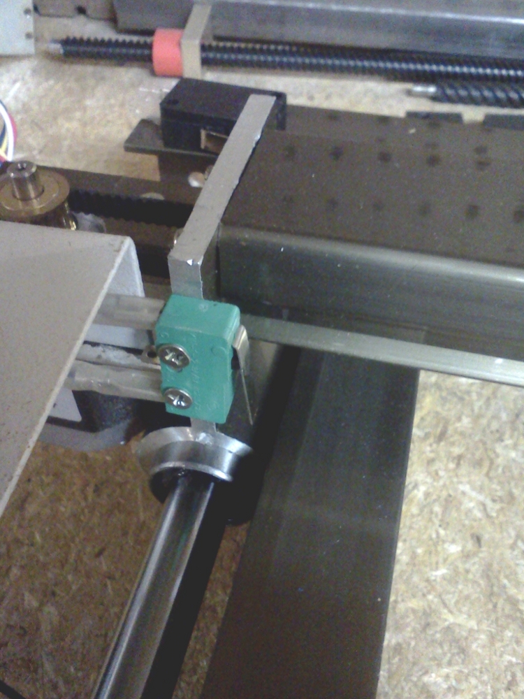 Y axis (note that this switch hits the aluminum rail in the back about where the optical flag was mounted.):